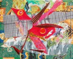 Het werk is niet een directe weergave van de realiteit. Ik zoek naar textiele materialen met de juiste kleuren en motieven, knip en scheur die in geschikte vormen en bevestig die met borduursel op de ondergrond. Het geheel is op houten panelen geplakt en daarna met olieverf bewerkt.